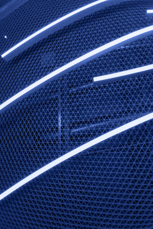 3d render. Abstract minimalist geometric background. Metallic texture illuminated with blue neon light. Ribbed glass wallpaper