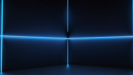 Blue Neon Light Strip on Dark Wall Futuristic Minimalist Neon Glow Scenery.