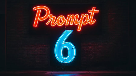 Vibrant neon sign displaying the text Prompt 6 in red and blue colors