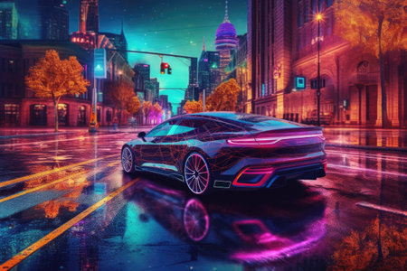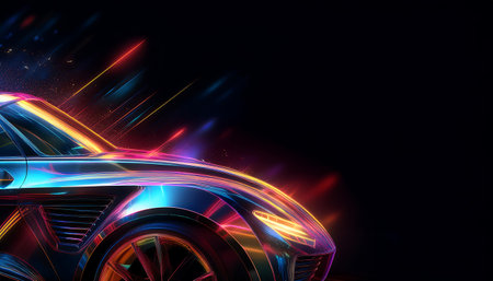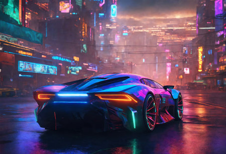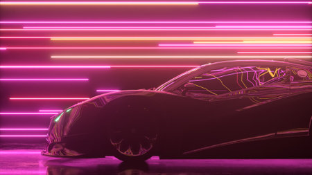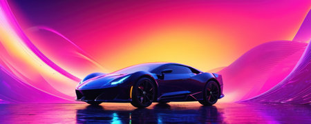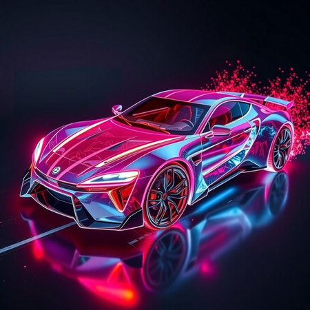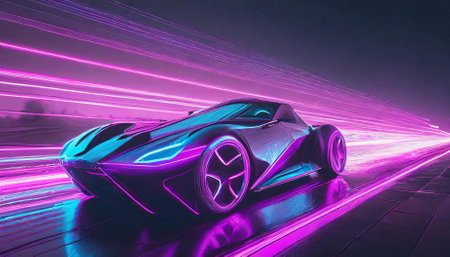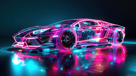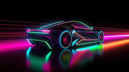 Futuristic neon sports car artwork with vibrant colors and glowing effects showcasing a sleek design