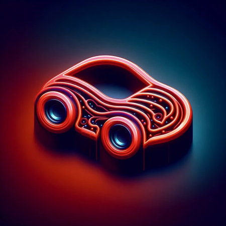 Vibrant car interior with sleek dashboard-mounted speakers, delivering high-quality sound.