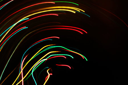 abstract colored light trails on a dark background, long exposure photo