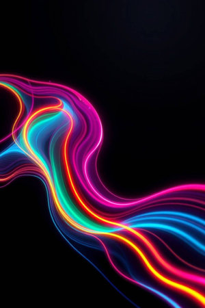abstract background with colorful neon lines on a black background for design
