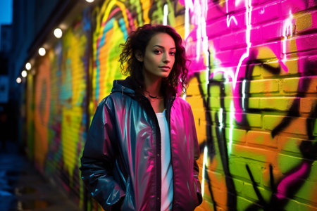Futuristic Woman in Neon Lights, Urban Style and Fashion, Vibes.