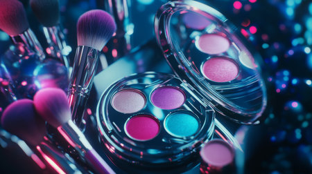 A vibrant collection of multi colored eyeshadows for glamorous make up generated by artificial intelligence