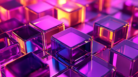 Futuristic 3D cubes glimmering in chrome and translucent colors