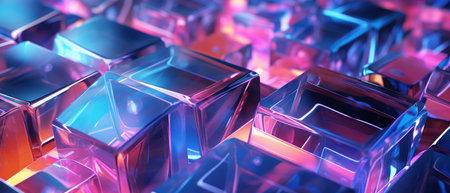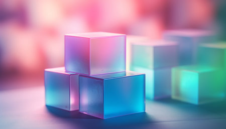 Vibrant 3d glass cubes with holographic texture against a futuristic gradient geometric background