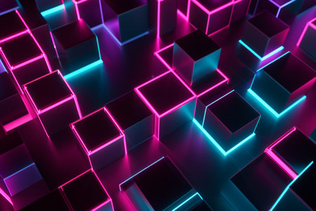 abstract 3d illustration of geometric shapes, neon lights, cubes