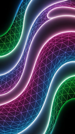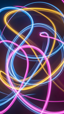 Glowing neon lines create a mesmerizing abstract overlay texture with vibrant colors