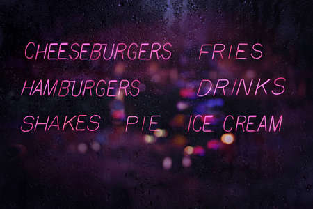 Vintage Neon Sign - Hamburgers and Fries with Drinks and Pie