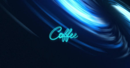 Image of coffee text over blue shapes moving. Social media, drink and digital interface concept digitally generated image.