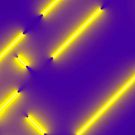 Yellow fluorescent lamps on a blue background. Modern presentation template. Futuristic concept. creative design. 3d rendering digital illustration