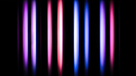 This image showcases a series of vertical lines in various bright colors against a stark black background. The composition features a symmetrical arrangement, with gradients of blue, red, and purple dominating the visual space. It presents a simple, yet striking design, potentially suitable for digital art, graphic design, and abstract concepts.