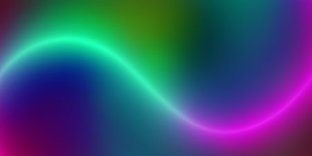 A bright, glowing yellow-green arc curves across a smooth, vibrant gradient background transitioning from magenta to purple, blue, and teal. Modern abstract digital art, ideal for backgrounds or design elements.