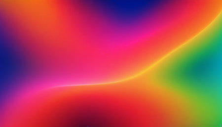 A smooth, soft gradient blends vibrant colors including deep blue, magenta, bright pink, orange, yellow, green, and teal. A thin, bright yellow-orange line curves across the creating a sense of depth and movement within the abstract color field.