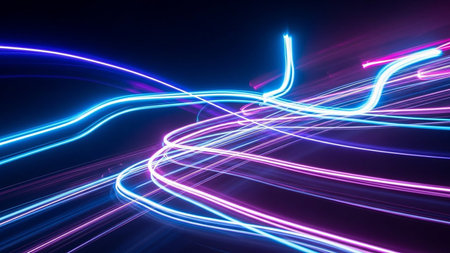 Colorful light trails in motion, vibrant neon streaks creating an energetic and dynamic abstract background