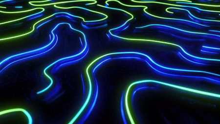 Colorful neon pathways intertwine in a complex circuit arrangement showing advanced technology.