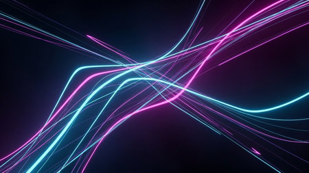 Fuchsia neon light streaks, dynamically flowing across a dark background, adding an energetic and futuristic vibe.