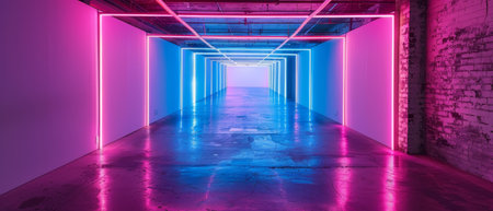 Futuristic Tunnel, Glowing Neon Lights, Blue and Pink, Perspective View, Vibrant Colors