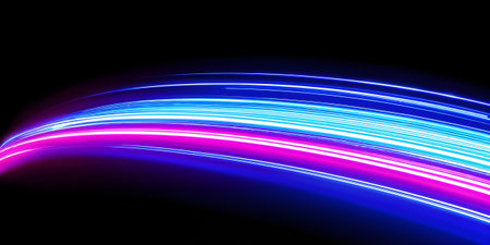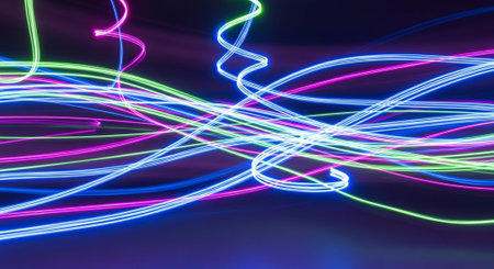 Colorful light trails in motion, vibrant neon streaks creating an energetic and dynamic abstract background
