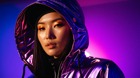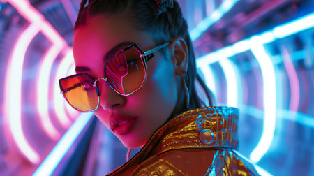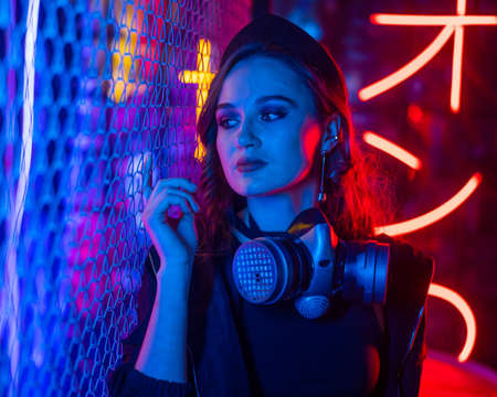 Futuristic Woman in Neon Lights, Urban Style and Fashion, Vibes.