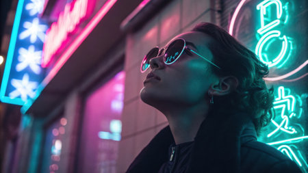 An artist's hand grasps a luminous neon frame, creating a futuristic masterpiece that shines in the dark