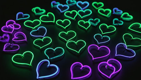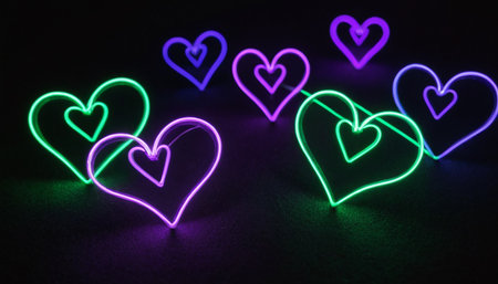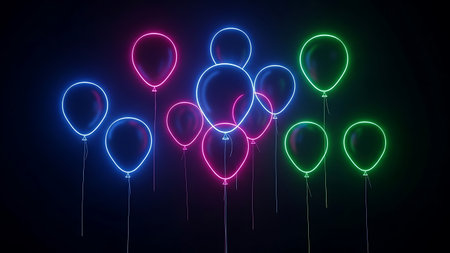 A captivating arrangement of neon tubes glowing in vivid colors set against a dark surface. Ideal for creative projects, artistic displays, and modern designs.