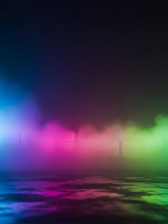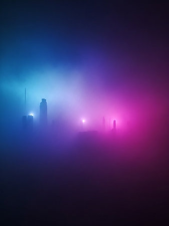 A captivating night scene featuring colorful fog and soft lights, creating an enchanting atmosphere perfect for creative projects and dreamy backgrounds.