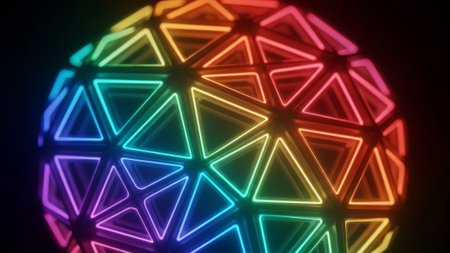 Abstract rainbow neon geometric sphere on dark background