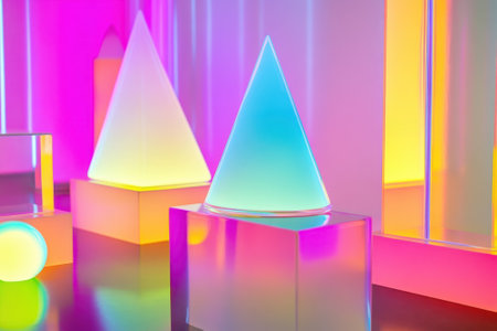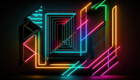 AI Generated. Abstract Geometric Composition with Neon Lighting and Vivid Colors