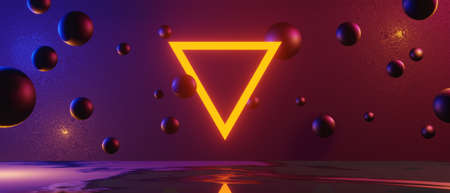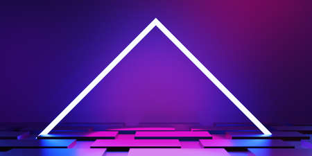 Neon triangle abstract background, 3D rendering. Computer digital drawing.