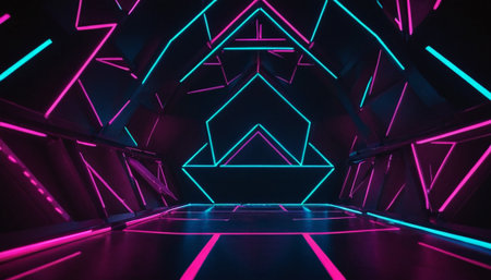 Geometric modern lamps with intense neon glow effect offer a striking visual for technology and celebration themes.