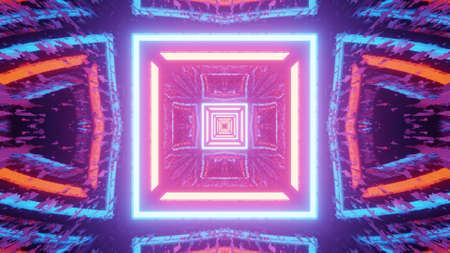 Colorful neon illumination of geometric tunnel 3d illustration