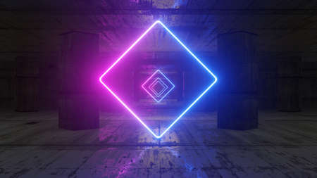 Neon rhombus background 3d illustration