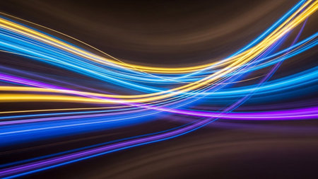 Colorful light trails in motion, vibrant neon streaks creating an energetic and dynamic abstract background