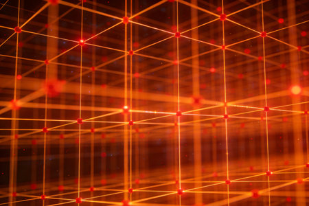 Futuristic glowing grid with dynamic pathways forming strategic routes.
