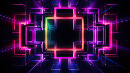 Futuristic neon abstract background with dark geometric patterns for design and technology projects