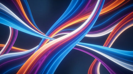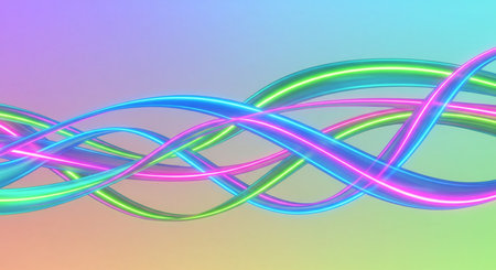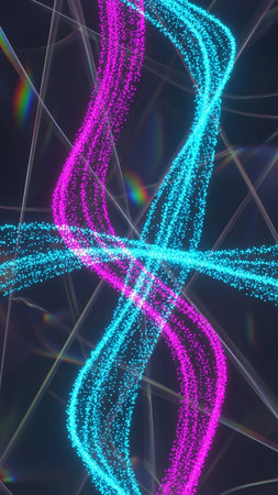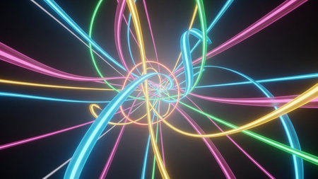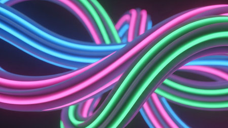 (331) showing twisted neon light tubes flowing in a wavy pattern against a dark background. High resolution image suitable for commercial use.