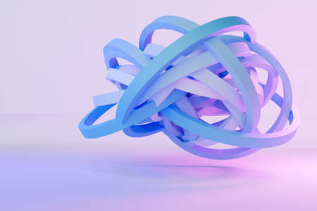 Lots of twisted 3D render texture ropes floating space in one rope. Strong tangled lines in creative swirl of futuristic presentation. Wriggling stream with brightly matted decoration.