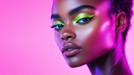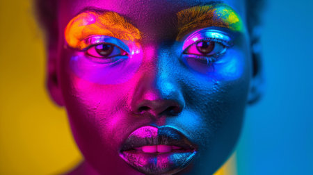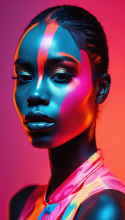 Portrait of a beautiful african american woman with neon makeup