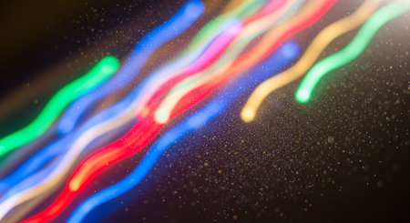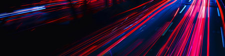 Colorful light trails in motion, vibrant neon streaks creating an energetic and dynamic abstract background