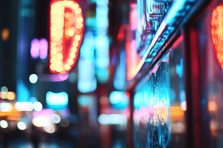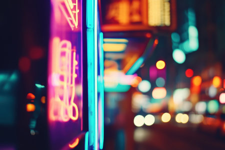Abstract blurred neon lights with bokeh, creating a vibrant and mysterious atmosphere, ideal for backgrounds in tech, entertainment, or nightlife themes. Generative AI
