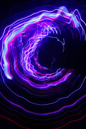 Capture the essence of motion with vibrant abstract light trails. This dynamic image features swirling colors and glowing lines that convey energy and creativity. Perfect for modern design projects.