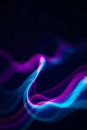 abstract background with blue and purple light lines on a dark background