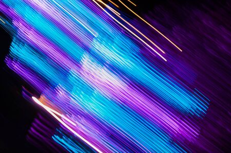 Abstract blurred colorful light effect on a black background. Long exposure photo of moving camera.