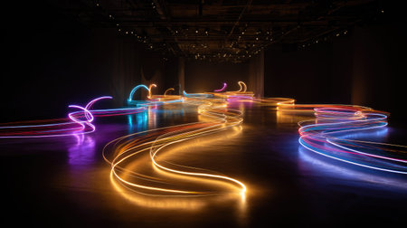 Capture the essence of motion with vibrant abstract light trails. This dynamic image features swirling colors and glowing lines that convey energy and creativity. Perfect for modern design projects.