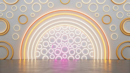 Colorful neon arch in the dark, abstract background. 3d rendering