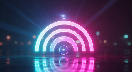 AI Generated. Round frame made of dynamic neon curved lines for technology concepts illuminating modern design