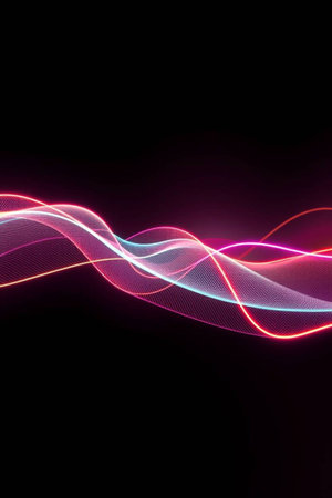 Abstract neon light waves flowing against a dark background