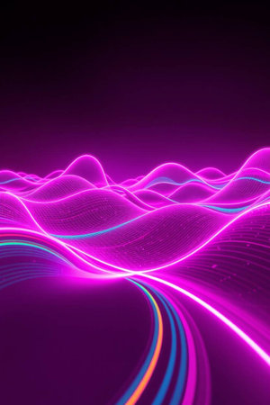 Abstract neon light waves and vertical frame design
